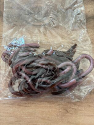 Vinilo tipo Stick Bait con forma de gusano de 65 milímetros de la marca Strike King modelo Ned Ocho en color marrón rojizo con pintas negras ideal para pesca al estilo Finesse.