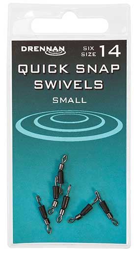 Enganche rápido Drennan Quick Snap Swivels son ideales para una variedad de usos y permiten al pescador cambiar los ganchos de forma rápida y sencilla.